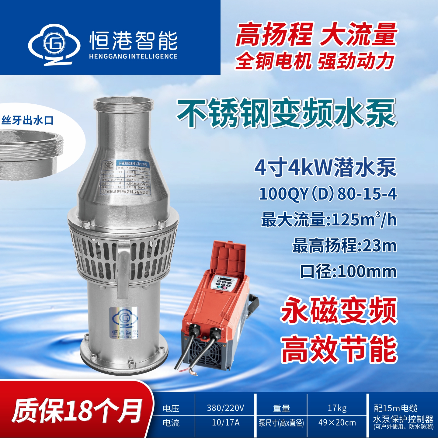 恒港智能永磁輕便型4寸口徑不銹鋼油浸式潛水泵