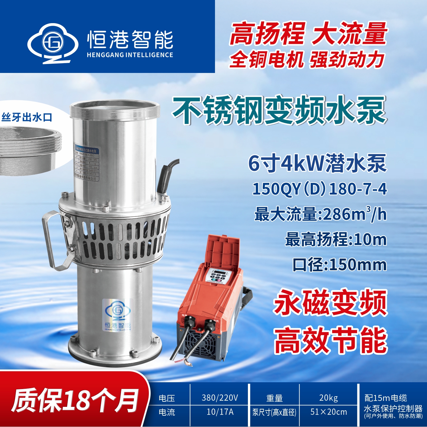 恒港智能永磁輕便型6寸口徑不銹鋼油浸式潛水泵