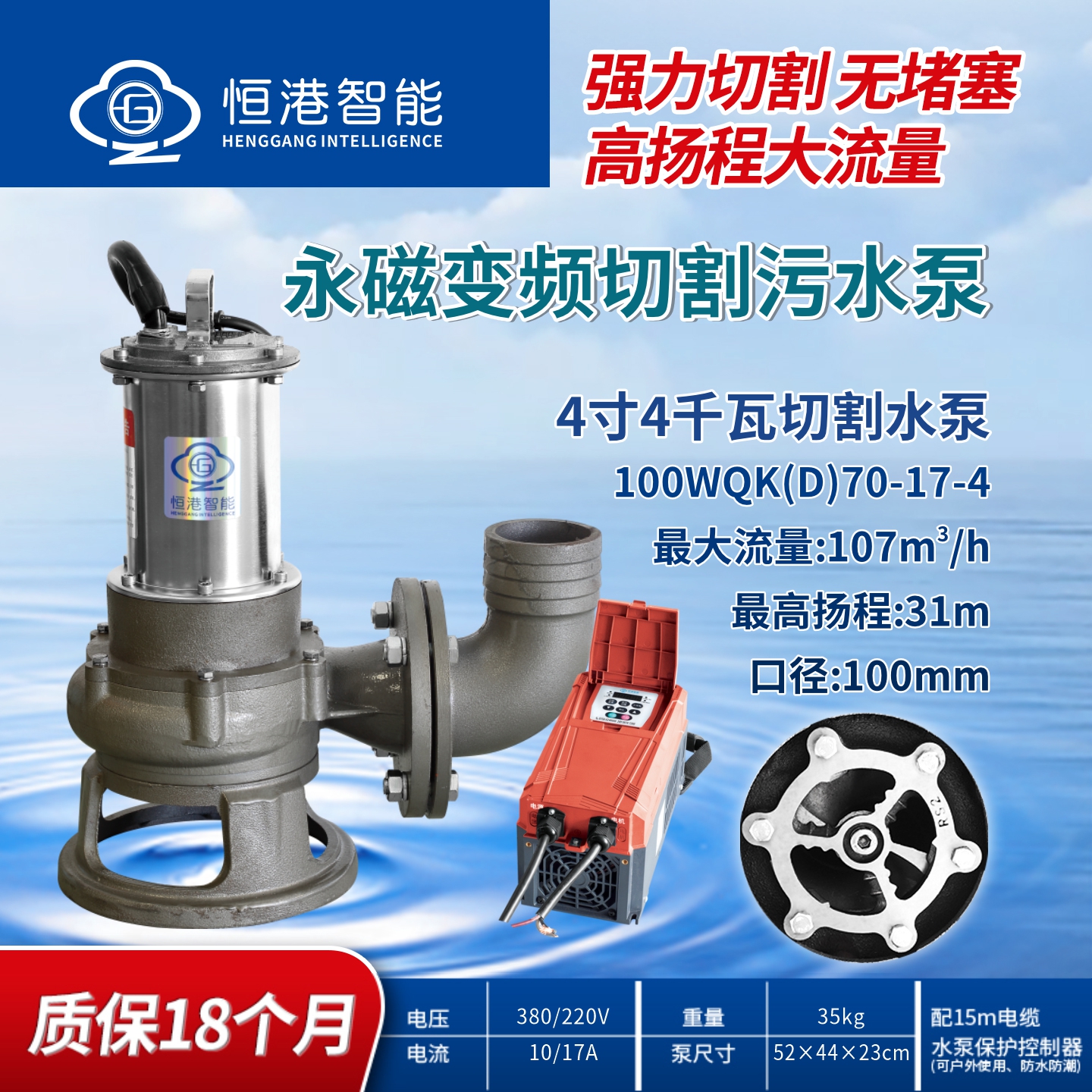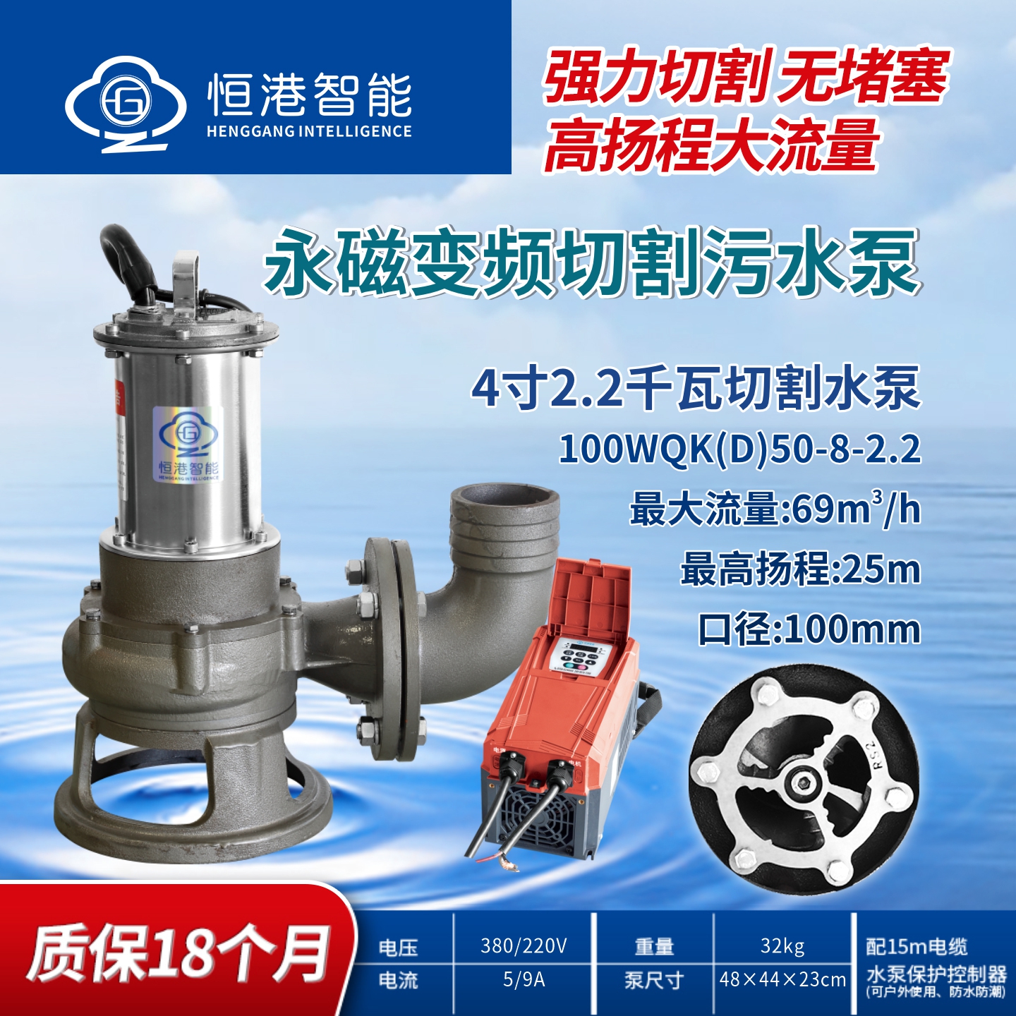 恒港智能永磁變頻4寸魚(yú)塘切割高效污水泵節(jié)能排污抽排泥漿淤泥泵